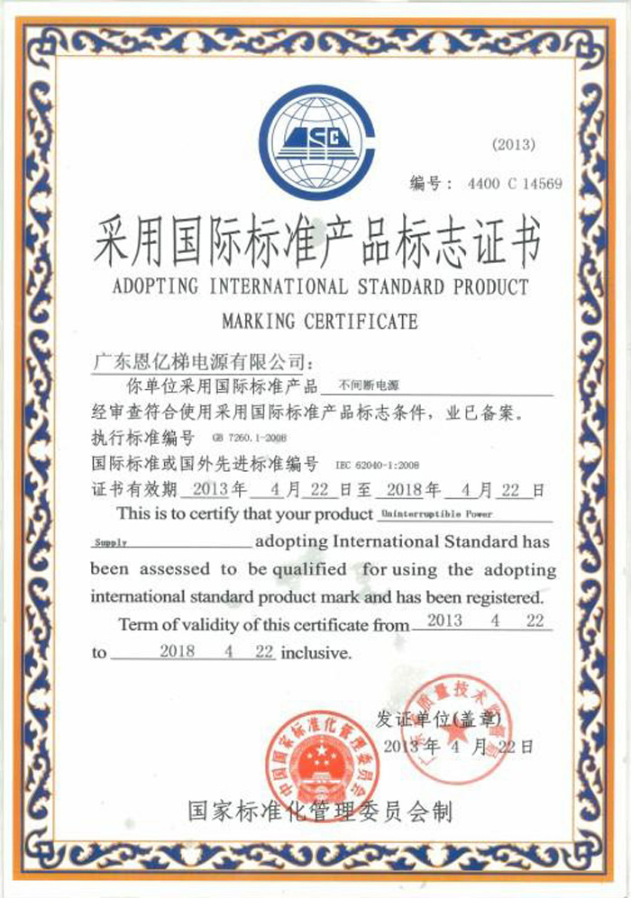 采用國(guó)際標(biāo)準(zhǔn)產(chǎn)品標(biāo)志證書(shū)